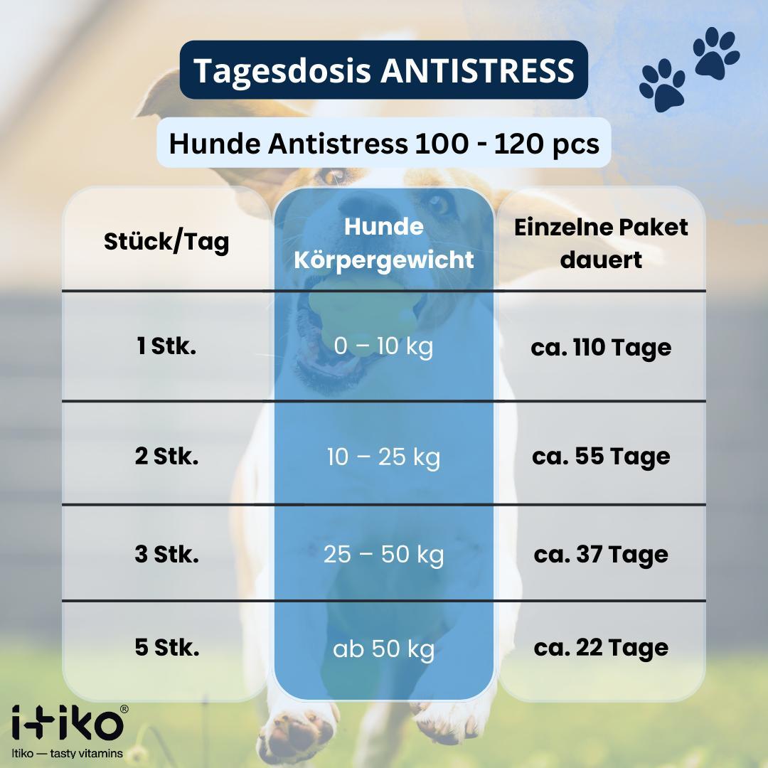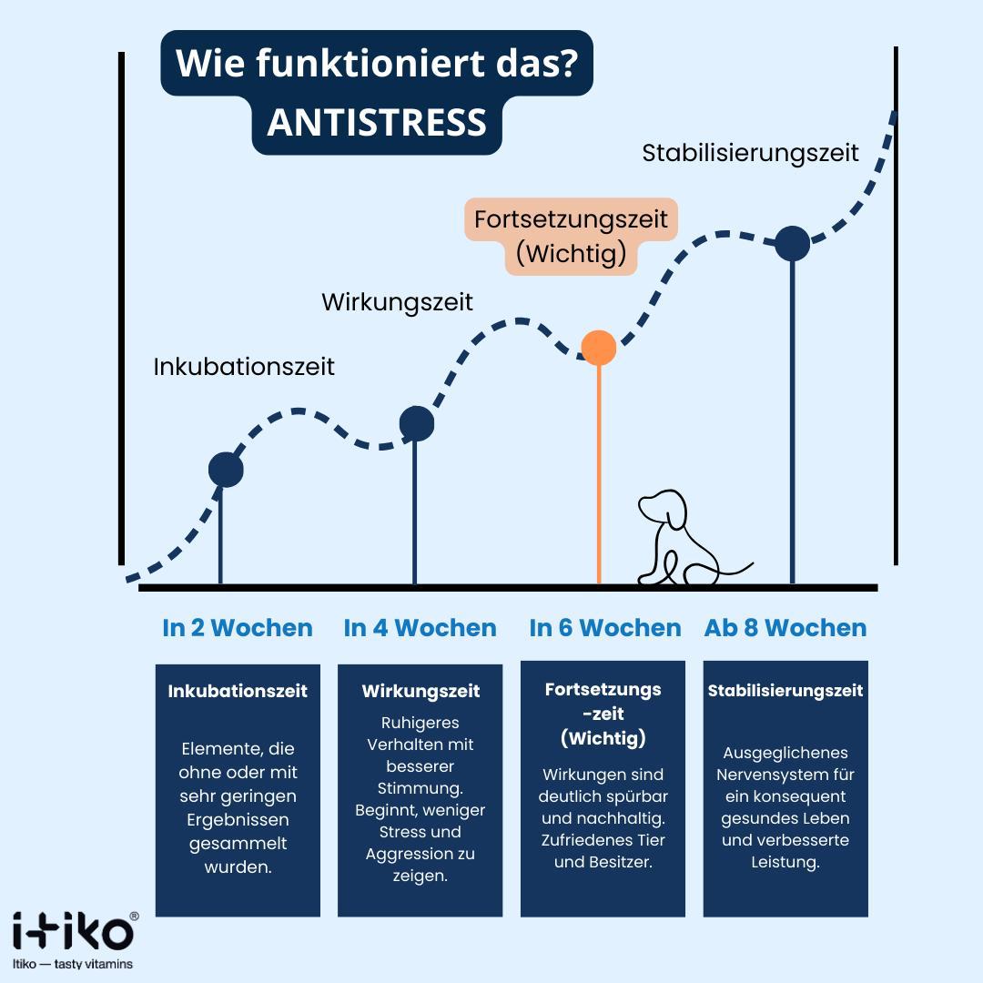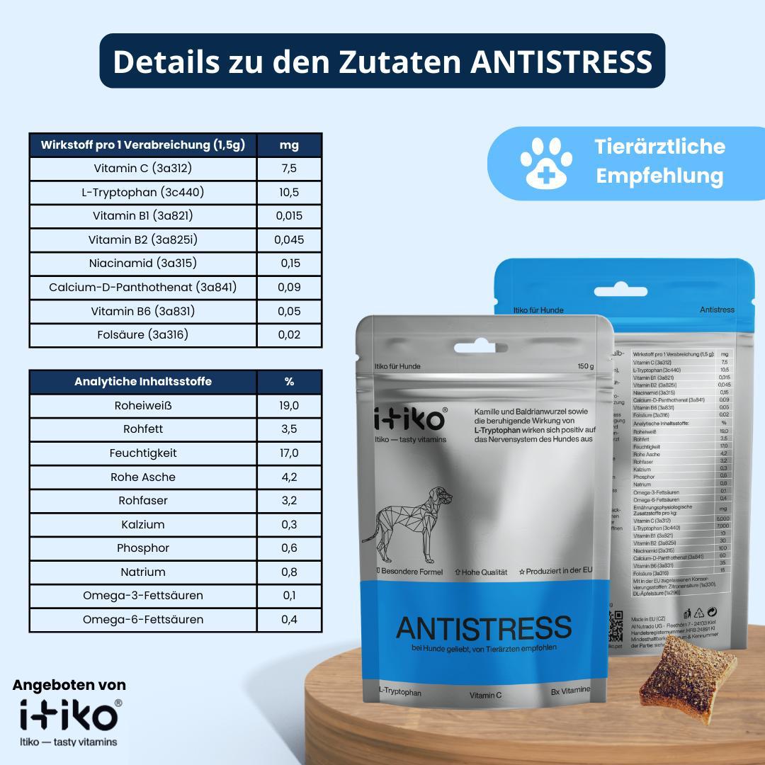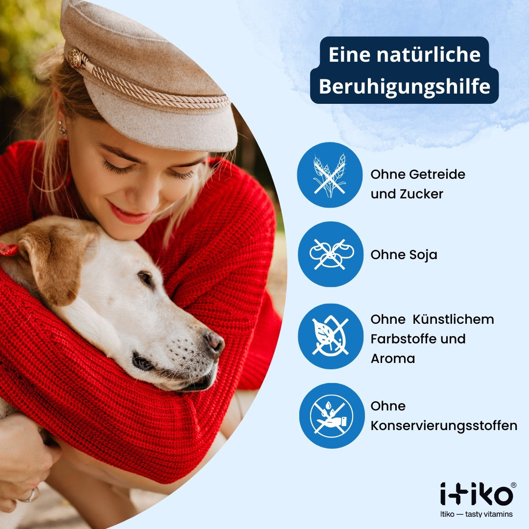 Durch die Kombination dieser vier Hauptbestandteile bieten unsere ITIKO Antistress-Vitamine umfassende Unterstützung für das Nervensystem Ihres Hundes.